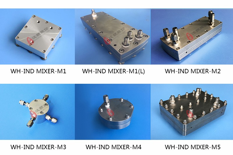 WH-IND MIXER-M1(L) | Material: SUS316L, TA2 Withstand voltage: 0-20MPA Use temperature: room temperature Use flow: 0-200ml/m Mixing principle: internal cross-flow Application: liquid-liquid-liquid |
